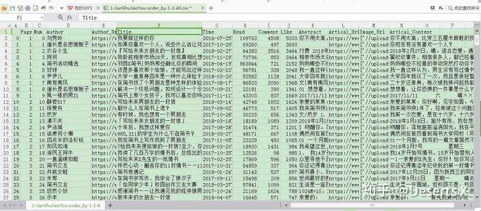 由于爬虫部分有小小的问题,所以就先跳过这部分内容,爬取的数据格式如下,主要涵盖:作者,主页URL,文章标题,发布时间,阅读量,评论数,喜欢数,文章摘要,文章URL,文中图片URL列表,文章内容等等维度。