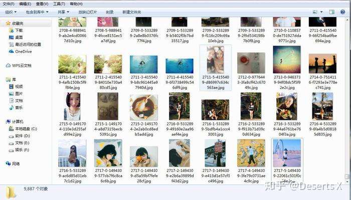 接下来就是高潮部分了。在“简书交友”专题里,不少人都贴了照片,甚至有自拍照,因此,我从文章开头csv的数据里取出其中文章链接一栏,并对所有照片进行爬取并md5去重后,共计拿到9887张照片,共6.96GB。