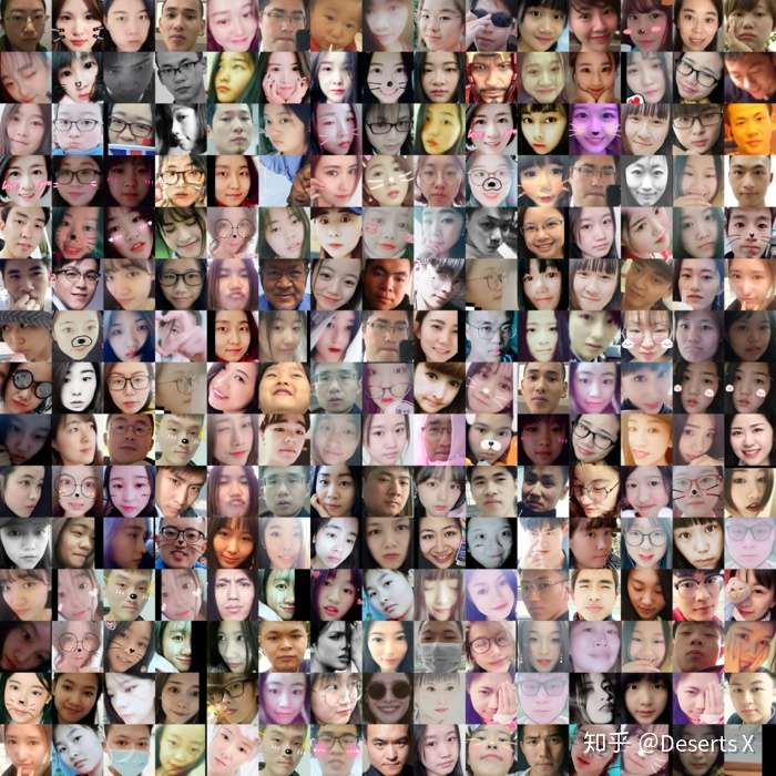 以前就留意过这方面的文章,原本想根据Python 爬虫 + 人脸检测 —— 知乎高颜值图片抓取一文实现下。但最近Python 抖音机器人,论如何在抖音上找到漂亮小姐姐?一文实在有些火,而且原作者提供了注册后的ID、KEY等参数,免去了自己注册的麻烦,于是在小小修改后直接用了起来,一些颜值打分的逻辑判断没修改,略有毛病,但大体能用。人脸识别并进行颜值打分,头像剪裁后统一存到一个文件夹,效果如下(侵删):