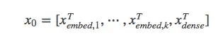 然后,我们将嵌入向量与连续特征向量叠加起来形成一个向量: