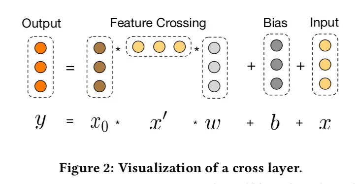 交叉网络的核心思想是以有效的方式应用显式特征交叉。交叉网络由交叉层组成,每个层具有以下公式: