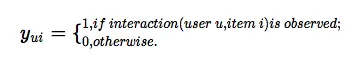 根据已得到的隐性反馈数据,我们将用户-条目交互矩阵Y定义为: