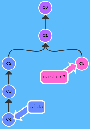 合并结束后,bugFix分支就没有用了,此时可以被删除。当然也可以再在bugFix分支上去合并master分支,此时实际上是bugFix指向的HEAD快速移动(fast forward)到了master分支。