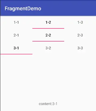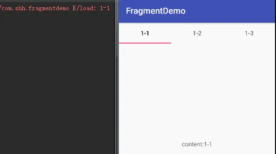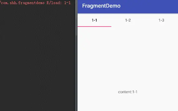 ViewPager 中第一个可见的 Fragment 会走onActivityCreated()方法去请求数据,之后切换 Fragment 会走setUserVisibleHint()方法去尝试请求数据。这样我们的 Fragment 继承 LazyLoadFragment,然后实现loadData()方法去完成数据的请求即可,写一个简单的 ViewPager 嵌套 Fragment 的界面,测试效果如下: