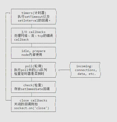 - nodejs的event是基于libuv,而浏览器的event loop则在html5的规范中明确定义。