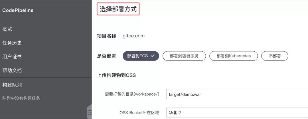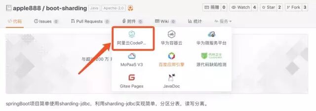 在码云(Gitee.com)项目页-服务,选择“阿里云 CodePipeline”