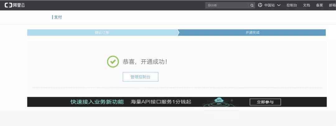 开通成功后,点击 "管理控制台"。