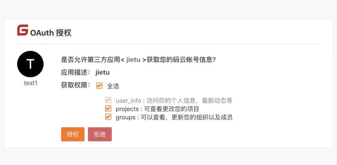 页面会跳转至码云的登录页面,然后授权。