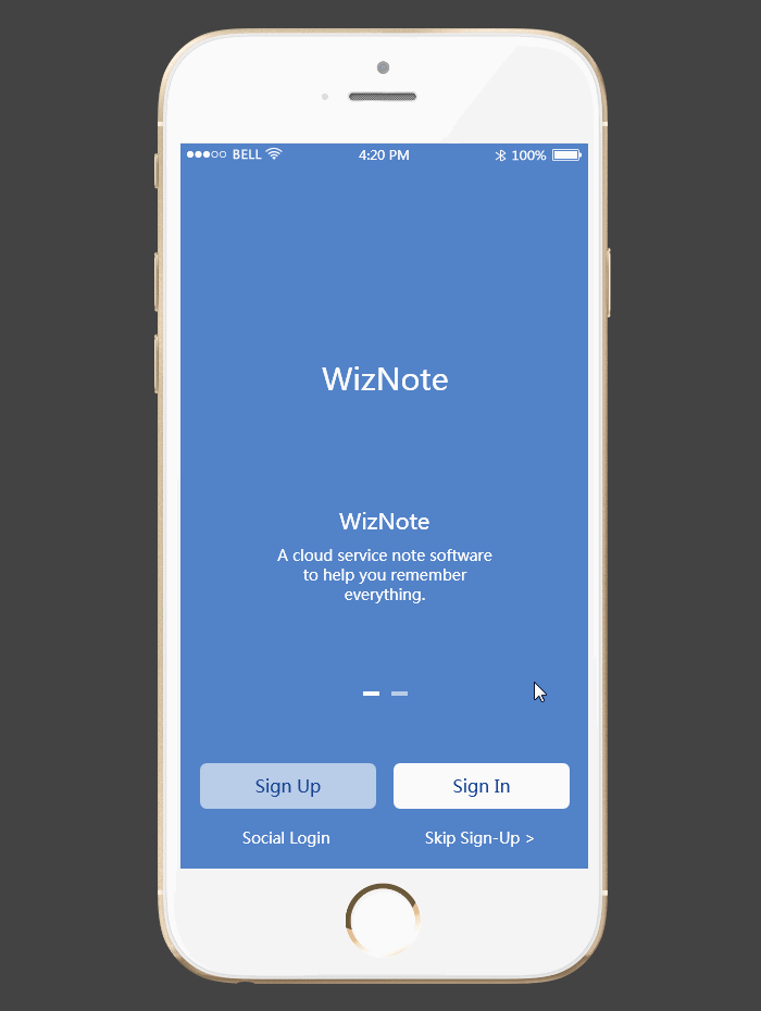 WizNote是当前较好用的一款云笔记软件,蓝色界面给人舒适、和谐的感觉,随时随地帮你记住所有的日程安排。这款原型中,底部是一个异形标签栏,在Mockplus中,可以采用圆形组件和矩形组件拼合而成,然后再将整体编组即可。同时对于这类DIY组件,可以收藏到自己的组件库中,在之后的项目中可以直接使用。将组件库同步到云,使用时更不受办公地点的约束。