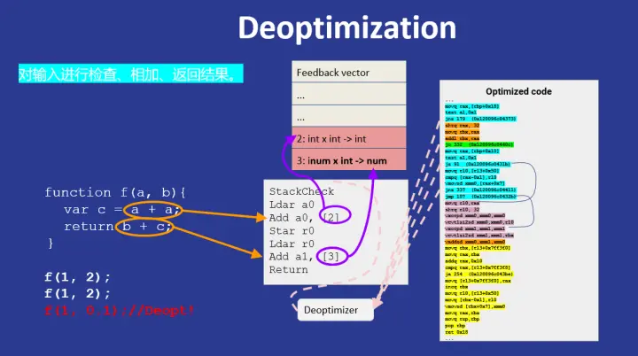 但是当后面再次以不同的类型调用函数时,V8 会进行**去优化(Deopt)**操作。