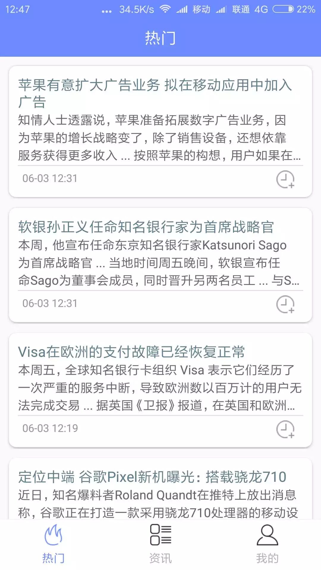 MVP架构、Retrofit+RxJava请求接口数据、Dagger、ButterKnife简化代码、Glide图片加载、AgentWeb显示新闻、greenDao实现稍后读功能、RxPermissions动态权限管理。