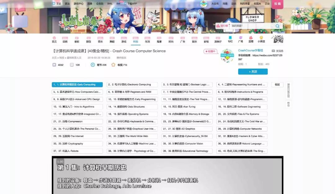 4 撒花 计算机科学速成计算机速成课 | Crash Course 字幕组 (全40集 2018-5-1 精校完成) 。