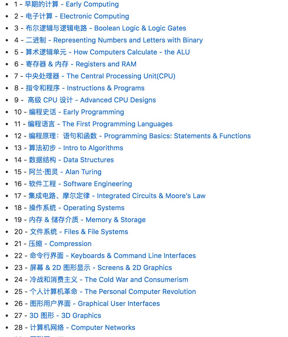 https://github.com/1c7/crash-course-computer-science-chinese