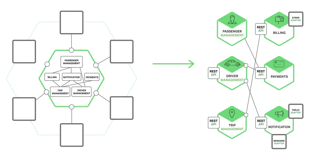 服务用通知,请求/回复和发布/订阅的组合。比如乘客的智能手机发送通知给旅程管理服务区请求一次打车。旅程管理服务通过用请求/回复调用乘客服务来验证乘客的账户是激活的。旅程管理服务就可以创建旅程并且用发布/订阅去通知其他服务,包括用调度器来定位可用的司机。