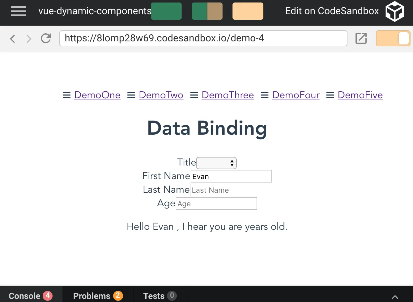 <FormsDemo> at src/components/DemoFour.vue