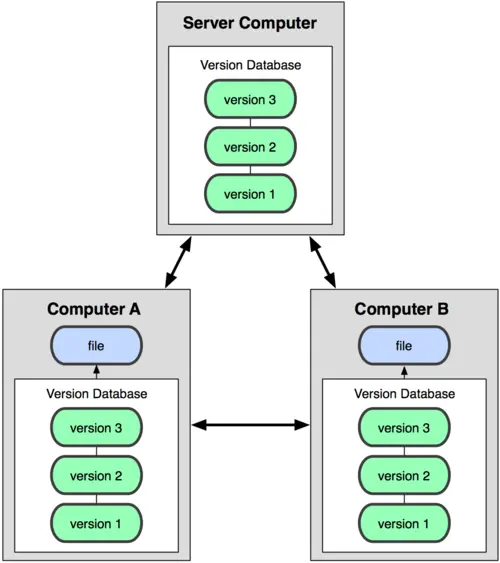 DVCS不是复制指定版本的快照,而是把所有的版本信息仓库全部同步到本地,这样就可以在本地查看所有版本历史,可以离线在本地提交,只需在连网时push到相应的服务器或其他用户那里。由于每个用户那里保存的都是所有的版本数据,所以,只要有一个用户的设备没有问题就可以恢复所有的数据。
