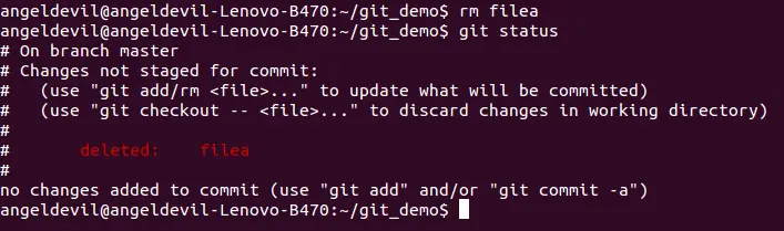 我们需要将文件添加到暂存区才能提交,而移除文件后是无法添加到暂存区的,那么怎么移除一个文件让GIT不再将其纳入版本控制呢?上图中GIT已经给出了说明: