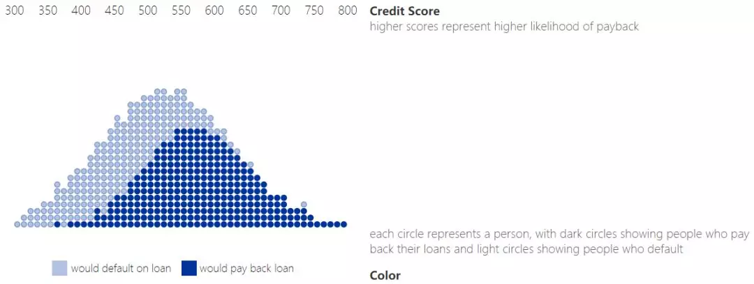 通过定义一个阈值,可以将得分转变为决策。例如,得分高于放贷阈值的人可以获得贷款,而低于放贷阈值的则被拒绝。这种决策规则叫阈值策略(threshold policy)。可以将得分理解为贷款违约的估计概率编码。例如,信用得分为 650 的人中,90% 的人会偿还其贷款。因此,银行可以预估其为信用得分为 650 的用户提供等额贷款的期望收益,同样,可以预测为信用得分高于 650(或任何给定阈值)的全体用户提供贷款的期望收益。