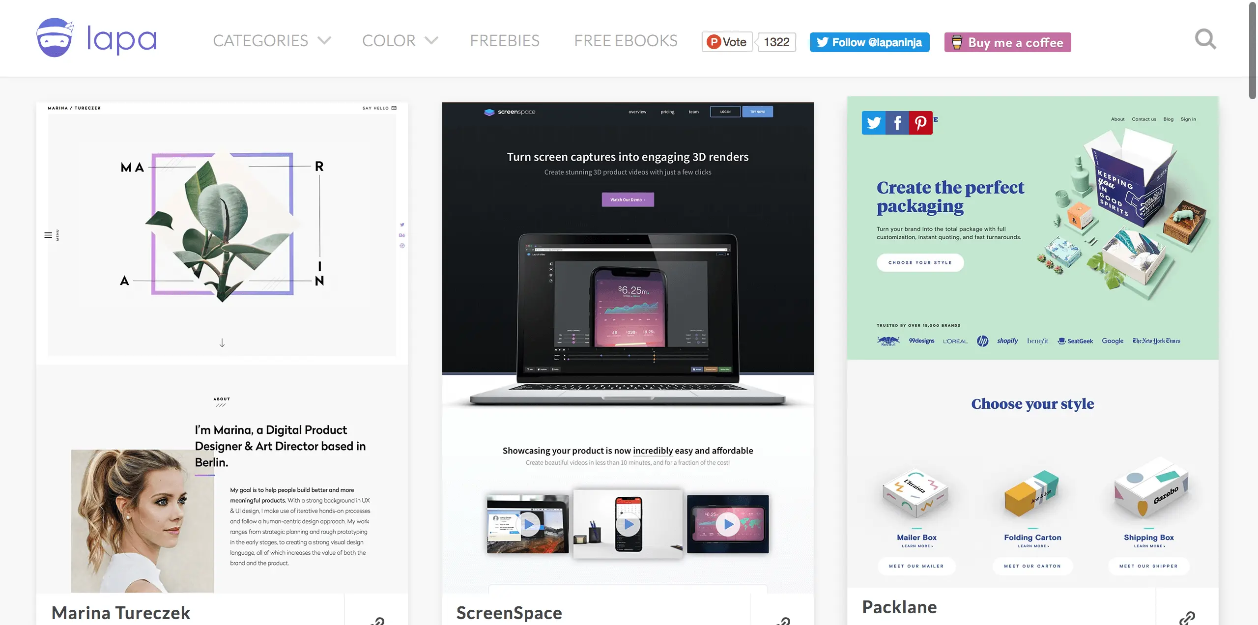 网址:www.lapa.ninja/Lapa Ninja 是一个致力于网页设计灵感作品展示的网站,提供登录界面、移动端界面、APP页面、邮箱界面等丰富的设计作品,可以帮助设计寻找设计灵感,欣赏来自世界各地的优秀设计作品。