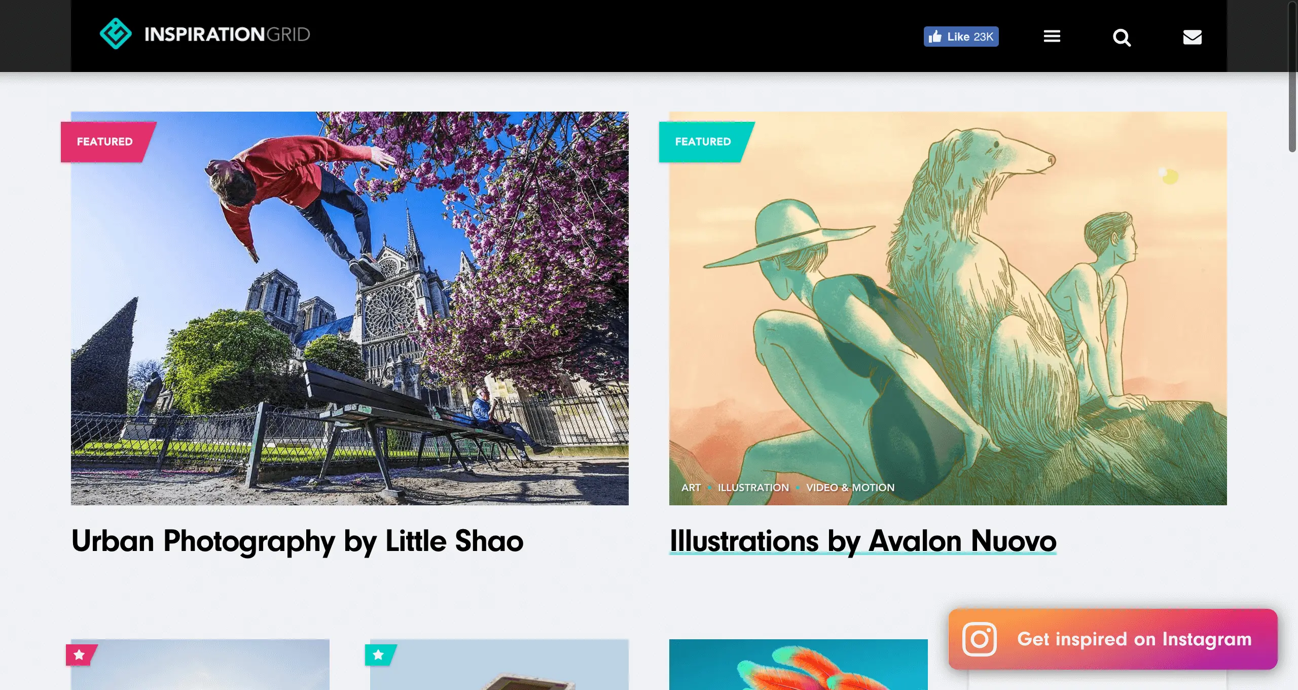 灵感格子(Inspiration Grid)是一个分享来自世界各地优秀创意人才的创意故事,主要涉及修复设计、艺术、插画、排版、摄影、建筑、时尚、包装设计、产品设计、平面设计等。