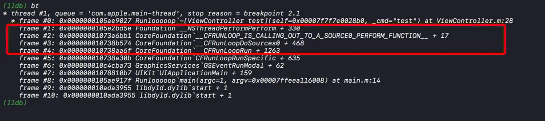 CFRunLoopRef runLoop = CFRunLoopGetCurrent();
