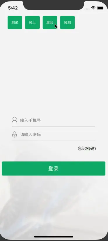 2.在登陆界面 通过生成UIButton分别代表不同的服务器地址,指定AFN的 baseURL,并做本地存储(可以通过手势操作来控制显示或者隐藏切换的界面)。
