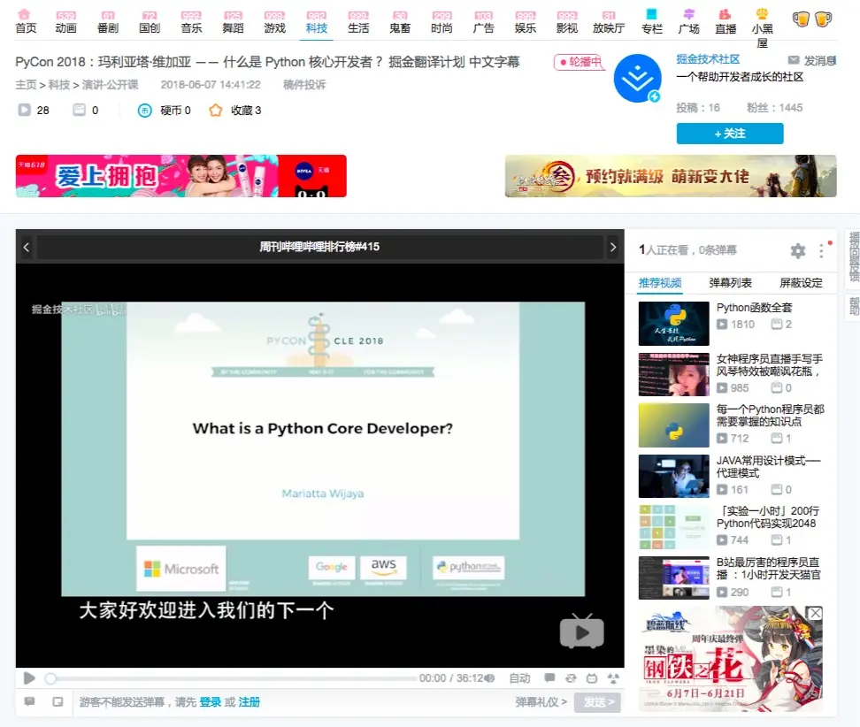 本文为 PyCon 2018 视频之 Mariatta Wijaya - What is a Python Core Developer? 的中文字幕,您可以搭配视频食用视频地址➡️www.bilibili.com/video/av244…。