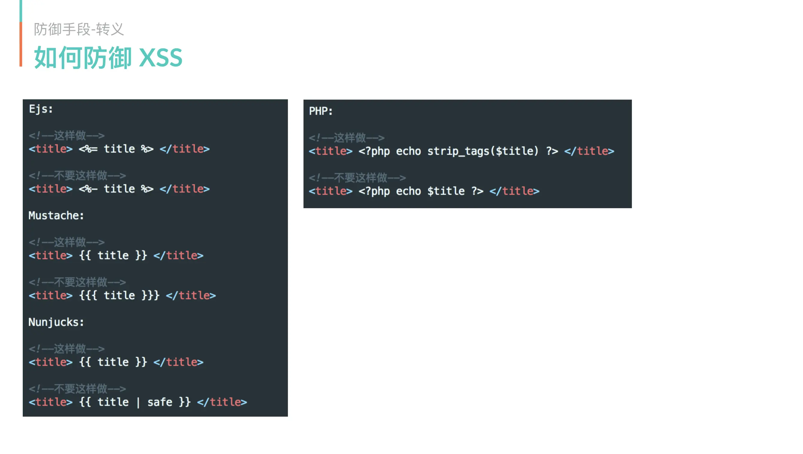转义 只针对 HTML进行转义 对于其他的转义 需要后台做配合处理