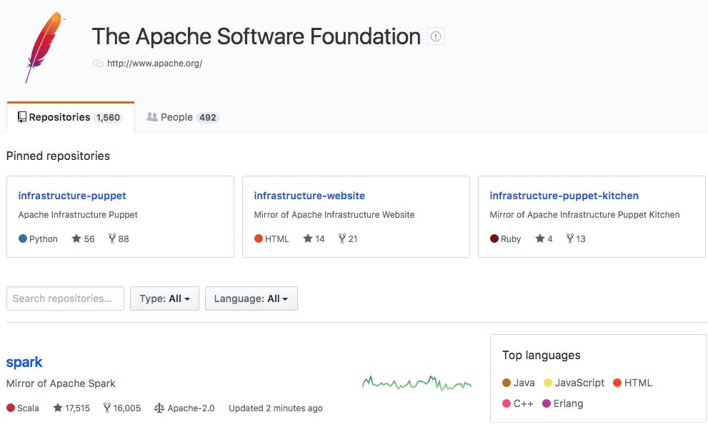 我到GitHub上查了一下微软的开源情况,微软目前开源项目有1835个,远超过Google的1288+233 (Google + Google Samples)个和Apache的1560个。