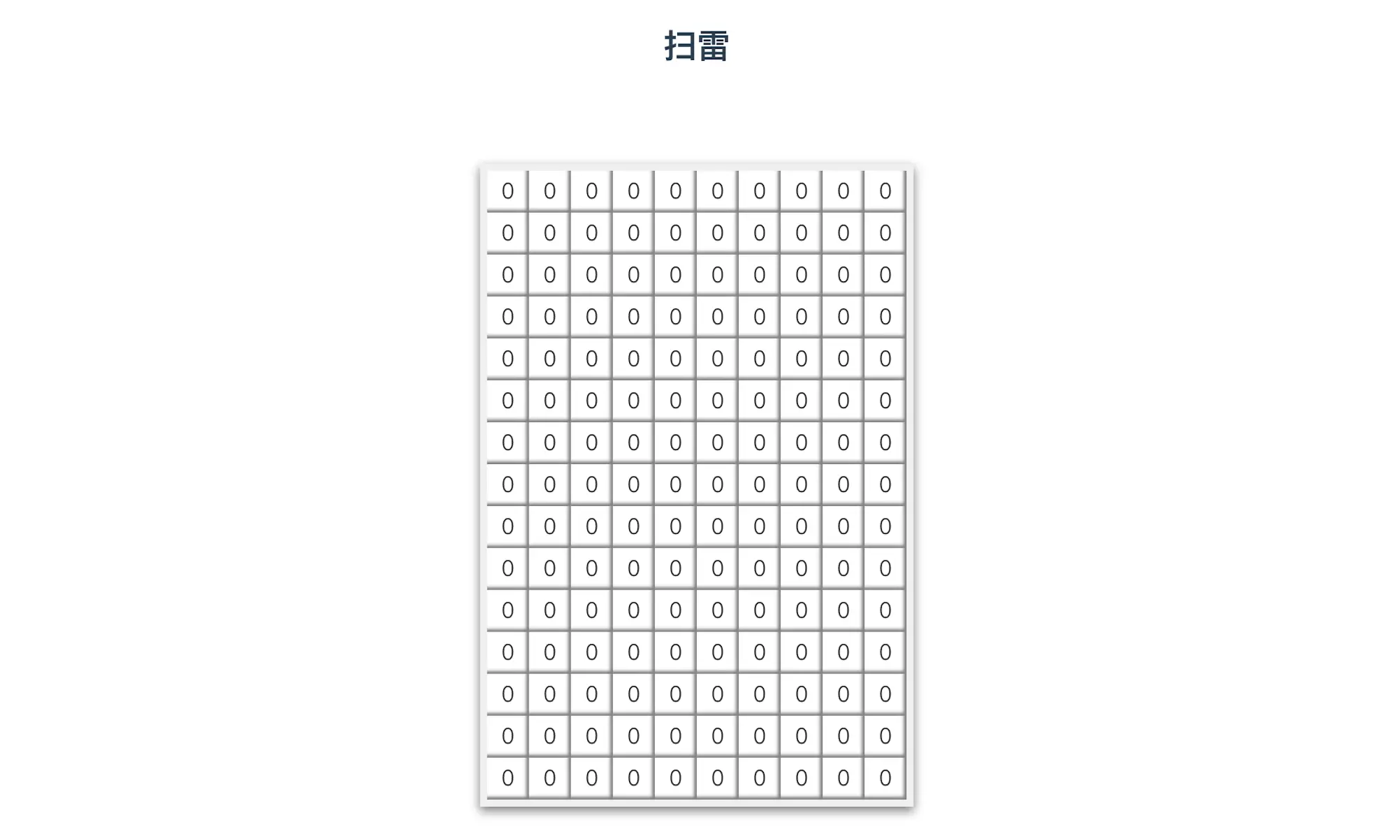 我们设置了 const SAFE_CELL = 0 作为默认填充,这个 0 表示周围都没有地雷,这样一个空白的地雷区域就出现了。