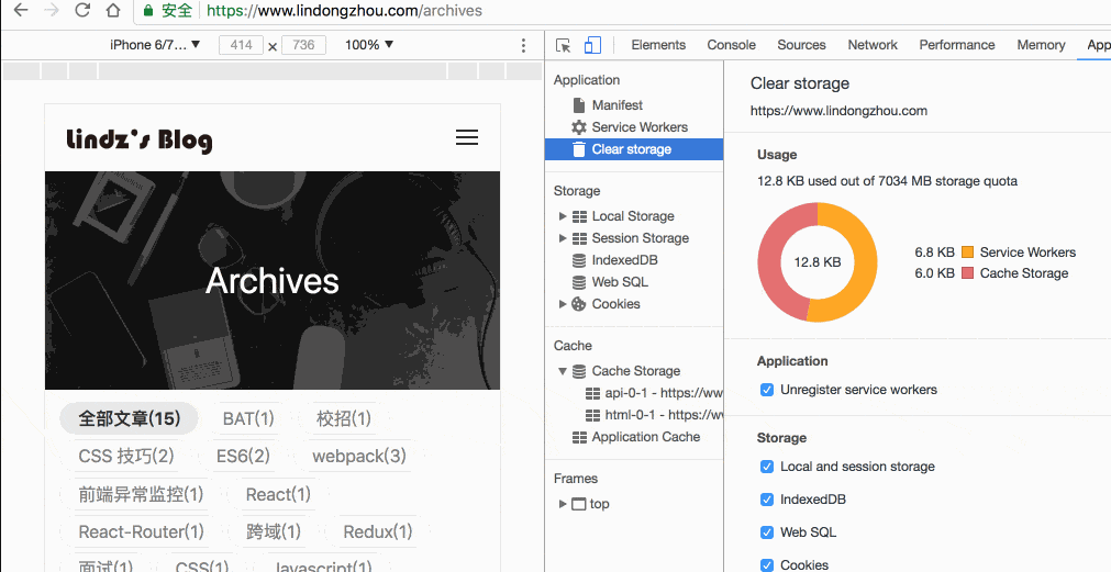 自此,我们已经完成了使用 service worker 对页面进行离线缓存的功能,如果想体验功能的话,访问我的博客:lindongzhou.com