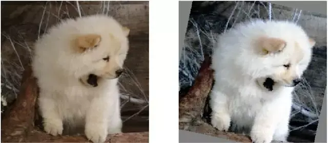 图左:来自 ImageNet 数据集中的原始图像。图右:由 AutoAugment 策略转换后的相同图像。右图对比度实现最大化,此外右图还经过了旋转处理。