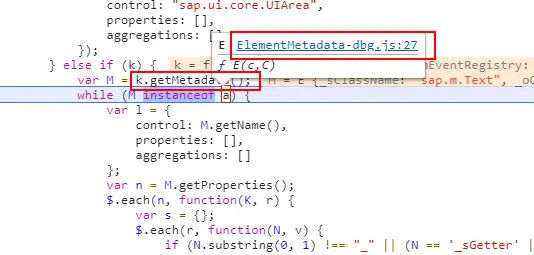 首先我们通过万能的在EventProvider.js的229行加断点方式定位到sap/ui/core/support/plugins/ControlTree.js文件,并找到目标方法getControlProperties。众所周知一切UI5控件都是派生自sap.ui.core.Element。而我们也注意到了这样的一个while循环。而这也就解释了为什么属性列表会按照BaseType加以划分,并会一直划分到Element一层。