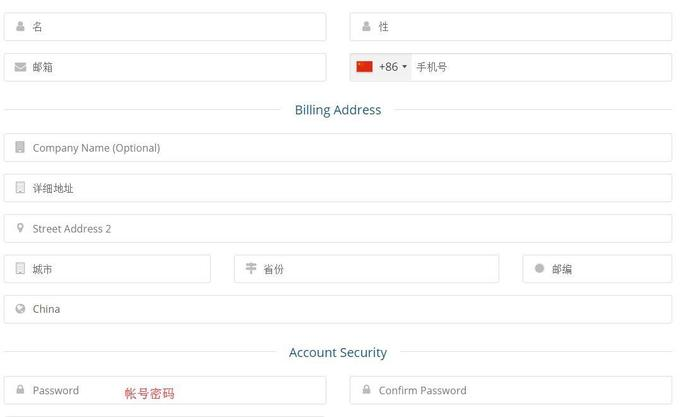如图所示完善账户信息,使用拼音即可,注意详细地址不要太长,反正不会上门找你,o(∩_∩)o VPS小学生因为地址太长被商家误判过可疑账户,囧。