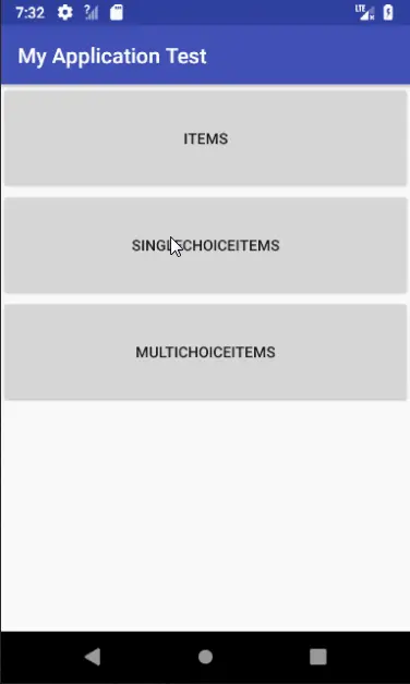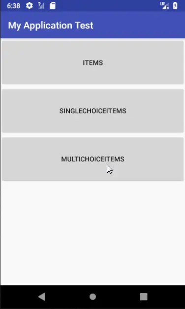 这种列表会有checked提示,setSingleChoiceItems()中第二个参数就是控制第几个被选中,而且点击之后不会自动消失,需要手动调用dialog.dismiss(),有时会配合setNegativeButton()、setPositiveButton等一起使用。