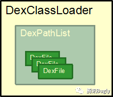 DexClassLoader重载了findClass方法,在加载类时会调用其内部的DexPathList去加载。DexPathList是在构造DexClassLoader时生成的,其内部包含了DexFile。如下图所示