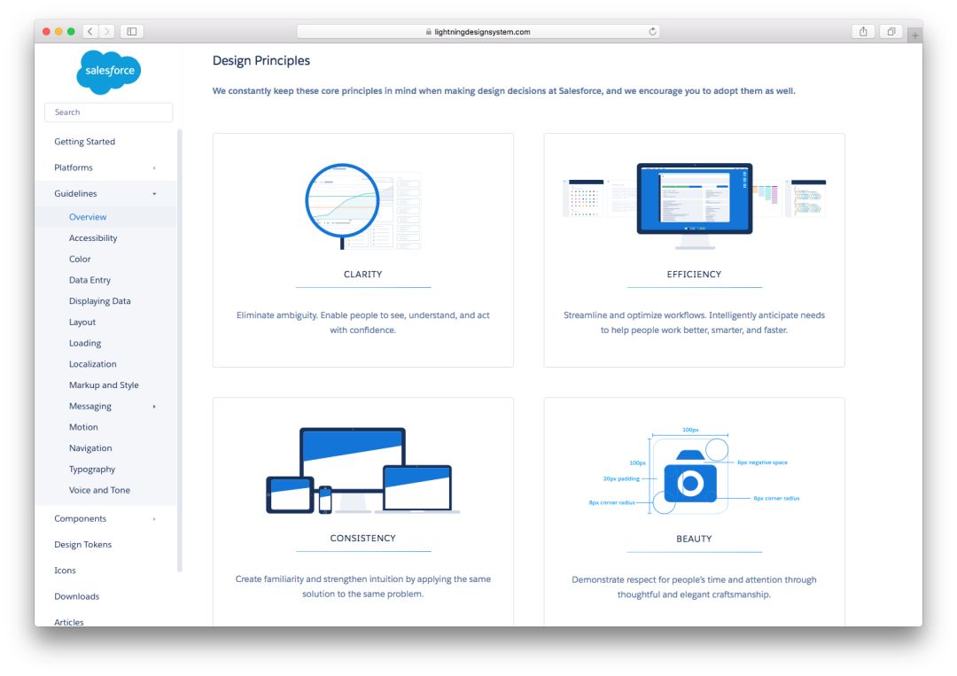 Salesforce Lightning设计系统包含一套通用的高级设计原则: