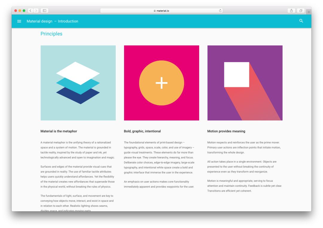 Google材质设计原则的设计方法非常简约,主要关注材质设计如何与通用设计系统一样独特。他们的原则是: