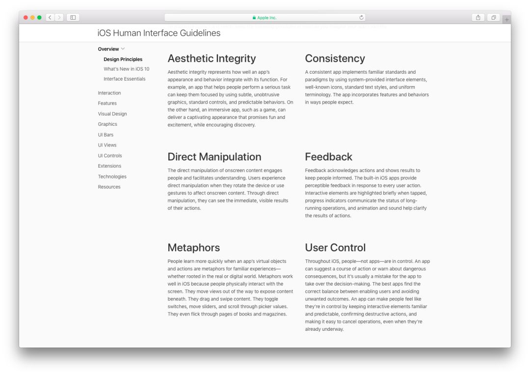 从Material Design设计真正属性的一系列规则中,到SalesforceLightning 系统中的一系列鼓舞人心的声明,再到iOS人类指南中对优秀设计的精确和严格定义。正如你所看到的,构建一套设计原则的方法各不相同。