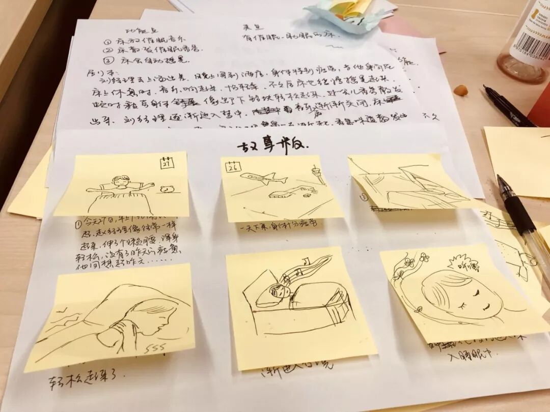 把最终留下的有趣的idea与投票较高的方案设计简单的草图,这一步针对具体的场景和细节来完成。需要具体到功能设置在哪里?如何触发到功能?在什么情况下这种功能使用?例如:床头的感应设置,当人躺下时,便触发了催眠功能,播放舒缓的音乐。可以用发散的方式或者图形表示出设计方案,这个图形的故事版不需要太精细,甚至是简笔画,只要可以看的懂这个故事板就可以。