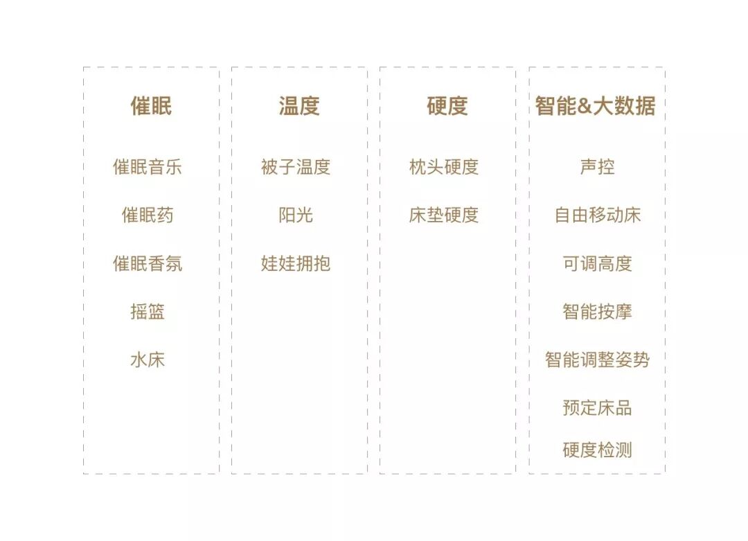 a、反向启发。当创意发散到瓶颈时候,可以反向思考下如果不解决这个问题,会造成什么样的后果?如果不解决床不舒服的问题,我可能会睡得全身肌肉酸痛不舒服。如何让第二天身体不疲惫呢?睡前在床上来一个按摩是否能够解决呢?
