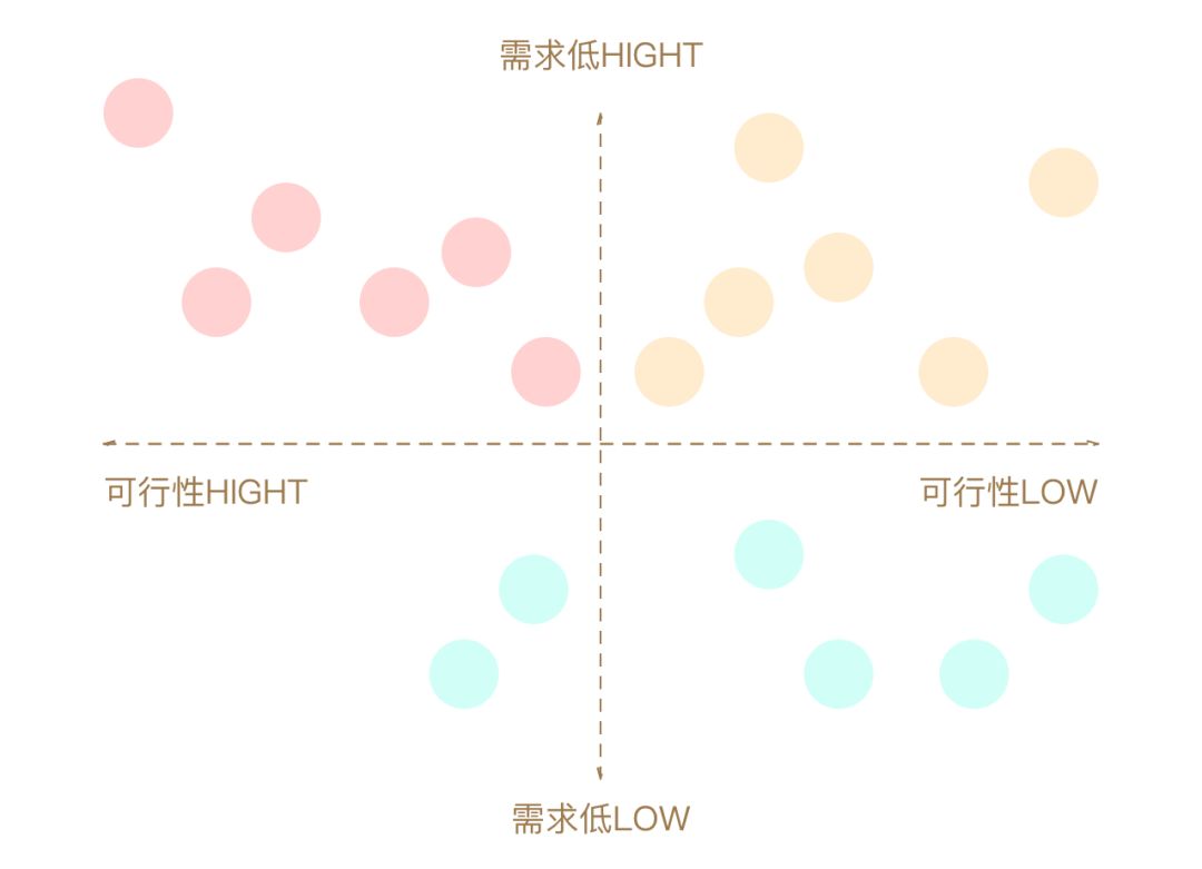 在分类整理后,按照需求与可行性的维度进行来排布。
