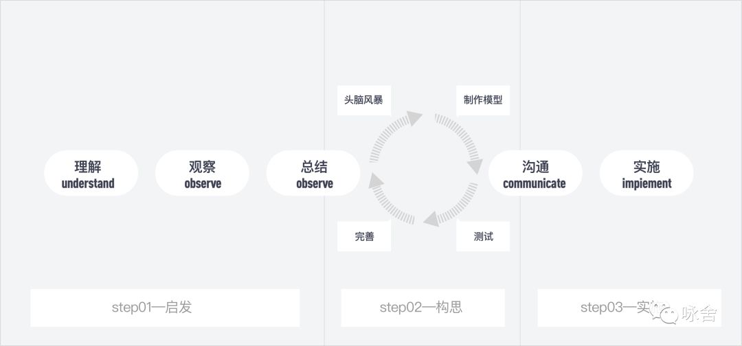 IEDO 把设计师的方法论应用在商业上,定义为— 设计思维Design Thinking。Design Thinking流程分三个阶段:已知问题—探索更多可能性—最终实施,设计师在IEDO设计思维流程中解决问题时面临更多的是创新挑战。step2的探索阶段中的一个环节就是头脑风暴,这也是设计师能产生创新方案的环节。