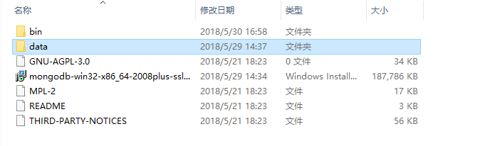 b.安装成功后里面会有bin文件然后再文件夹里面新建一个data文件夹,data文件里面新建db文件夹