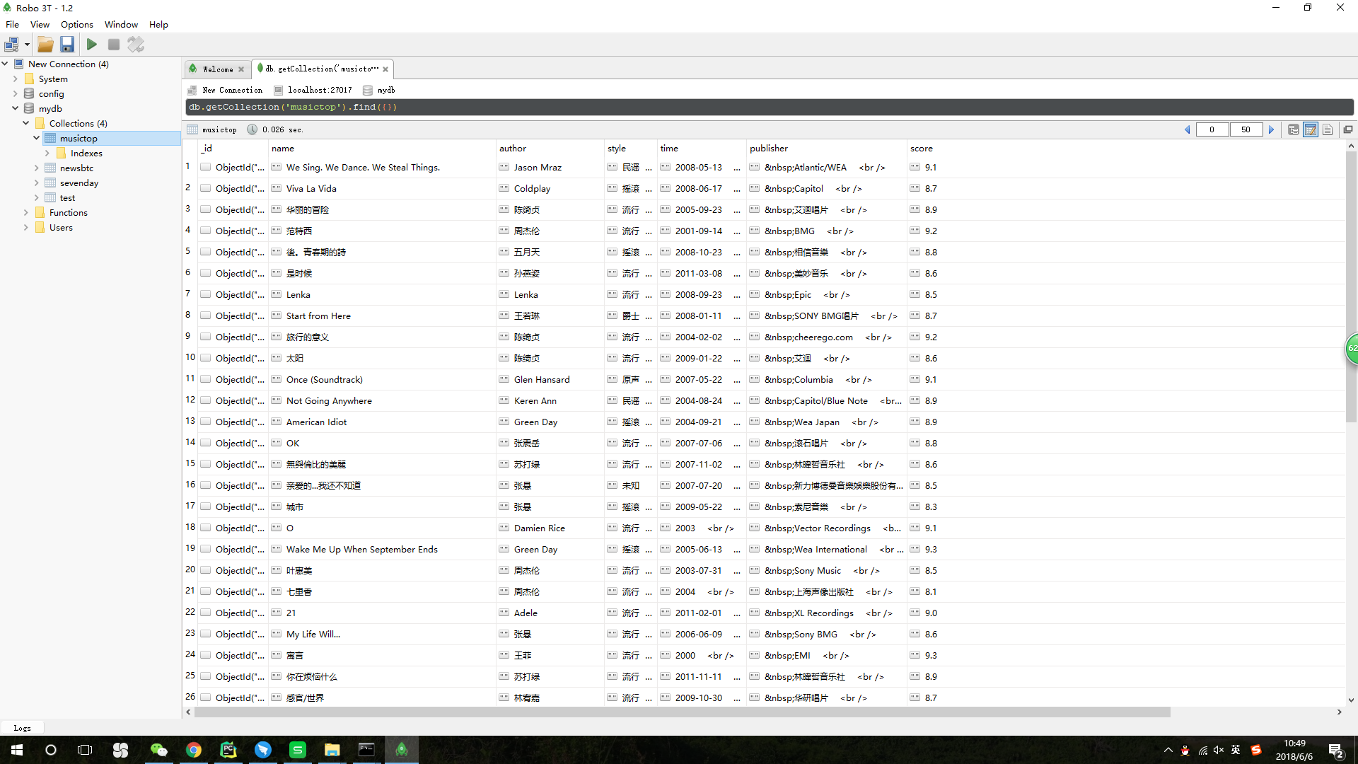 6.执行爬虫代码,然后到Robomongo刷新就会看到数据已经有啦