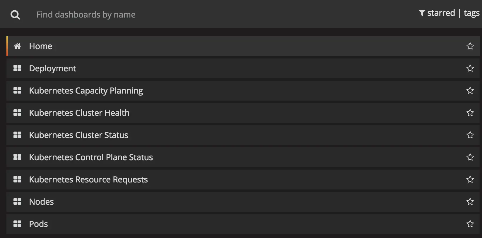 Prometheus Operator 通过 Grafana 展示监控数据,预定义了一系列的 Dashboard: