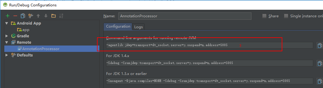 注意新建remoteDebuger的名称一定要是AnnotationProcessor
