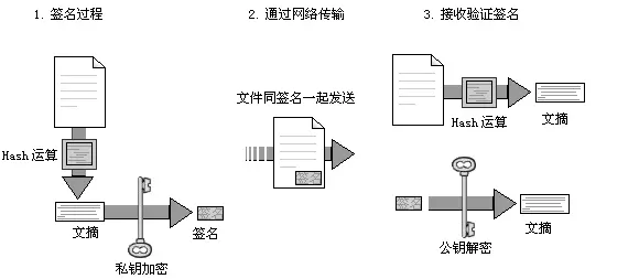 在网络中,私钥的拥有者可以在一段数据被发送前先对数据进行签名得到一个签名,通过网络吧此数据发送给接受者之后,数据的接收者可以通过公钥来对该签名进行验证,以确保这段数据是私钥的拥有者所发出的原始数据,且在网络中的传输过程中未被修改.