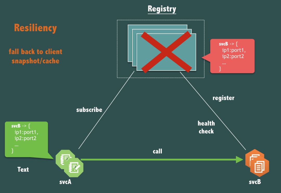 注册中心的容灾考虑前文提过,在实践中,注册中心不能因为自身的任何原因破坏服务之间本身的可连通性,那么在可用性上,一个本质的问题,如果注册中心(Registry)本身完全宕机了,svcA 调用 svcB 链路应该受到影响么?