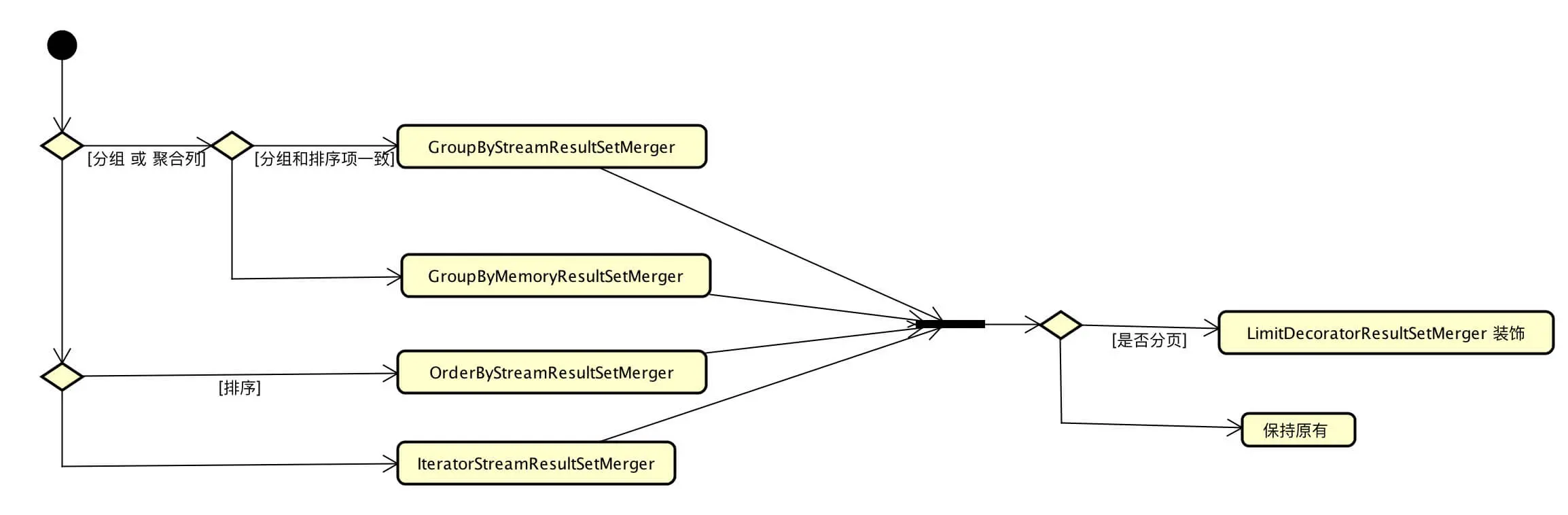| OrderByStreamResultSetMerger | SELECT * FROM t_order ORDER BY id |
